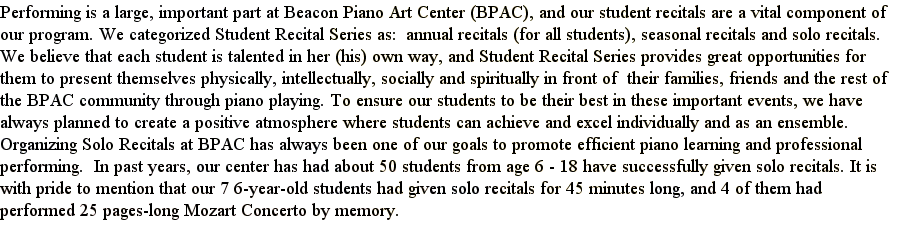 | List of Students for Solo Recital 2015 Nov. 7 Annie Lee Emmi Wong 2014 March 8 Rachel Yang June 1 Karin Lou Maggie Yan Tiana Zhou Nov. 11 Andrew Zheng Irene Chen 2012 Feburary 14 Karin Liu Feburary 27 Andy Liu 2011 October 30 Lillian Ding Septemeber 25 Samantha Chan Brian Lin June 27 Conway Qu June 5 Tiana Zhou Diya Iqlas 2010 December 5 Jaya Brown September 11 Angela Tsang 2009 May 31 Arthur Chen March 15 Leo Kang 2008 September 26 Willam Dong June 27 Karey Shi Kelly Shi June 24 Janice Chan Ryan Yu June 20 Anna Liu Susie Zhang April 14 Alex Thoi Lilian Thoi January Leo Kang 2007 Emily Yang Bryant Cong Andrew Lam Rachael Ye Ryan Higgins 2006 October 15 Authur Chen May 13 Daniel Xu 2005 August 28 Max Chung March 19th Susie Zhang Janurary 25 Kelly Shi 2004 December 1 Karey Shi March 13 Norinal J. Kham February 29 Noel Wan 2003 October 6 Joy Wan April 27 Ryan Yu April 1 Max Chung 2001 May 6 Wenwen February 17 Eryn Mai 2000 Joy wan Noel Wan Michelle Lang 1999 Ann Nguye |