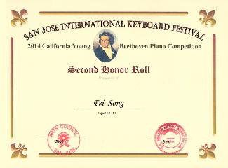 2014 California Young Beethoven International Piano Competition Second Honor Roll