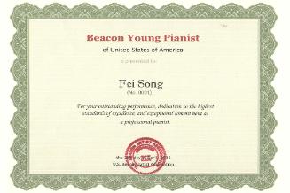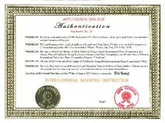 the judges of American International Piano Contest. By strict screening of San Jose Art Council, Song